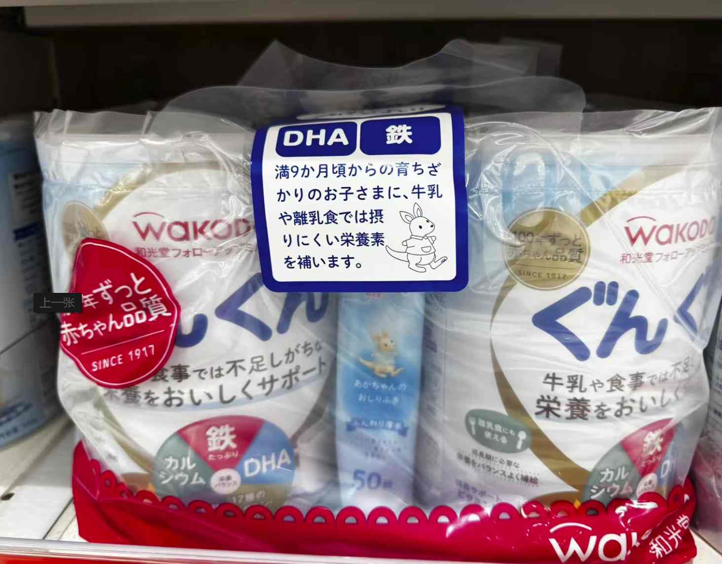 和光堂WAKODO 二段奶粉 蓝色罐装 830g*2罐套组+湿巾50抽(适合9个月-3岁)