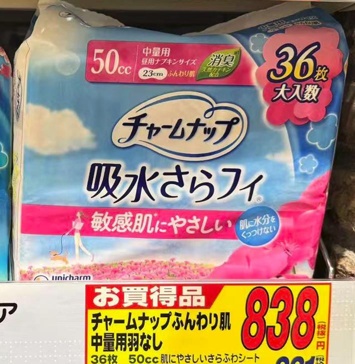 苏菲 UNICHARM尤妮佳 敏感肌肤可用 抗菌消臭卫生巾护垫 50cc23cm 无香 大包装36枚入