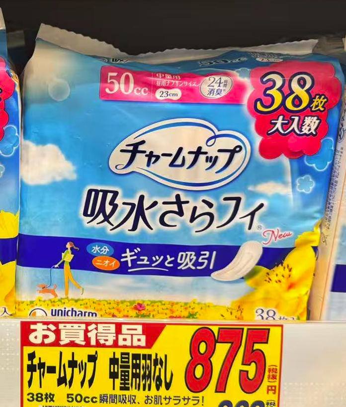苏菲 UNICHARM尤妮佳 抗菌消臭卫生巾护垫 中量用 50cc23cm 花香 大包装38枚入