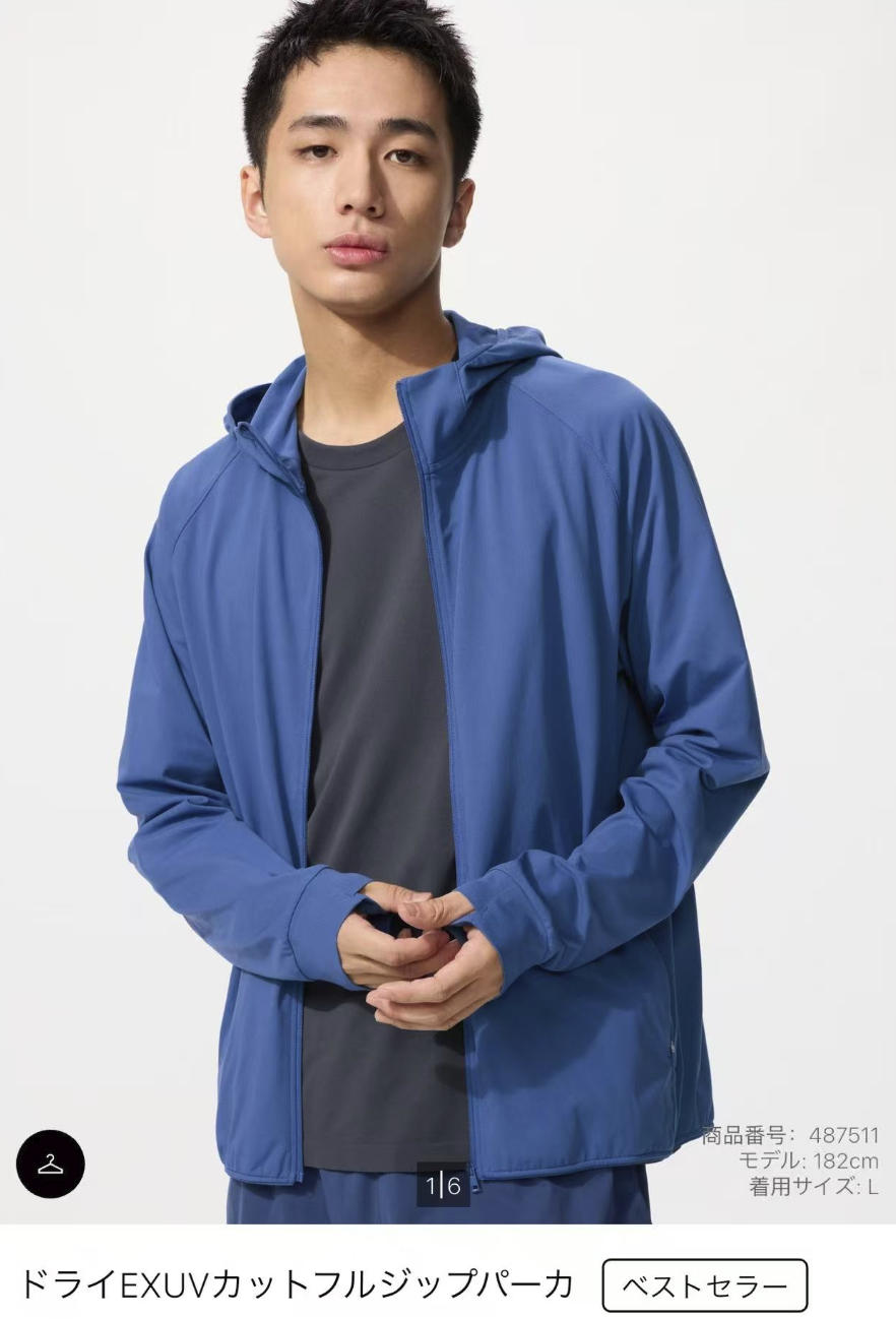优衣库 DRY-EXUV速干高弹力防紫外线透气拉链连帽卫衣男士防晒外套 多色多尺码可选(487511)(缺货退款)