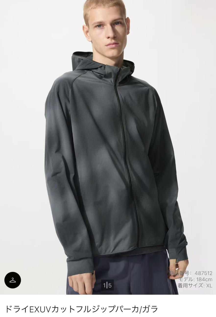 优衣库 DRY-EXUV速干防紫外线拉链连帽卫衣男士防晒外套 多色多尺码可选(487512)(缺货退款)